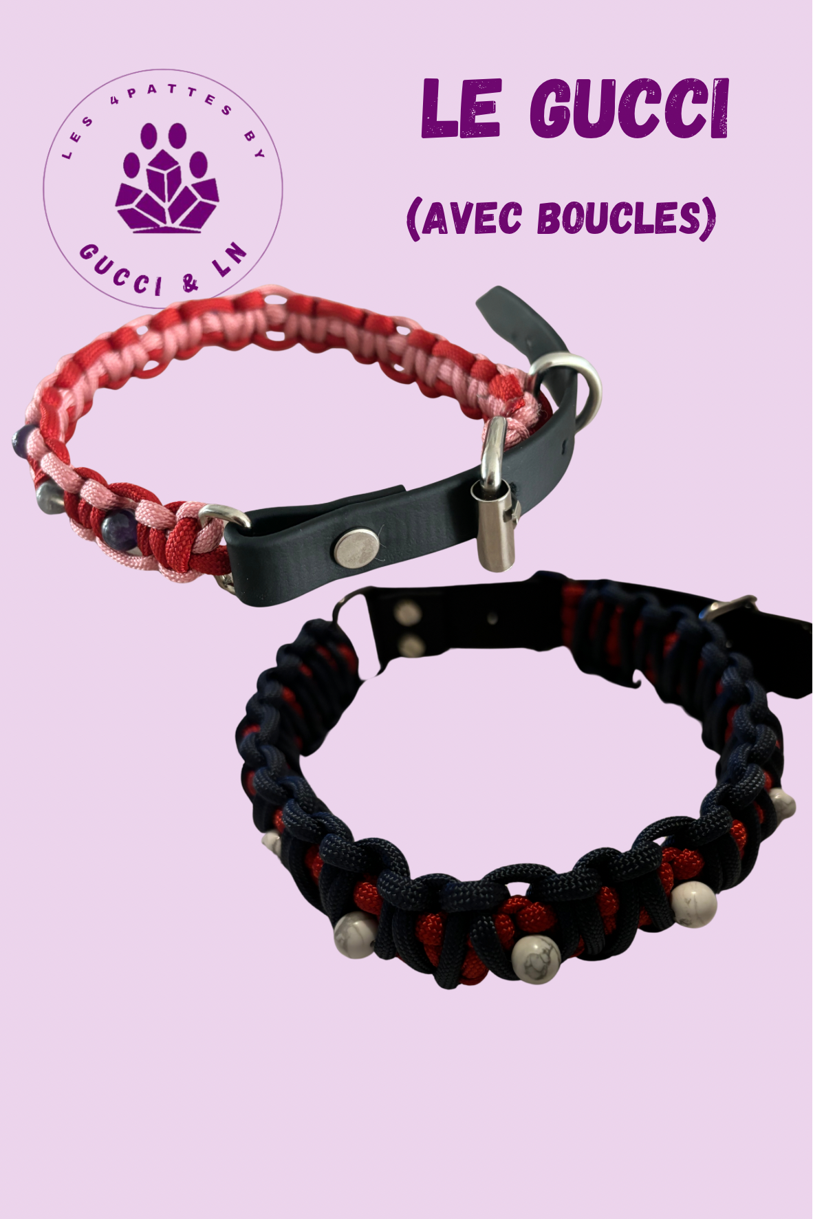 Collier pour chien modèle "Gucci" simple ou double tressage
